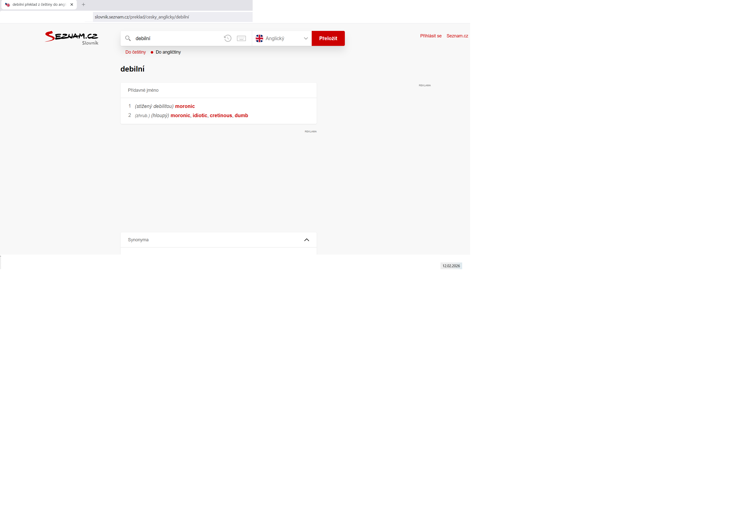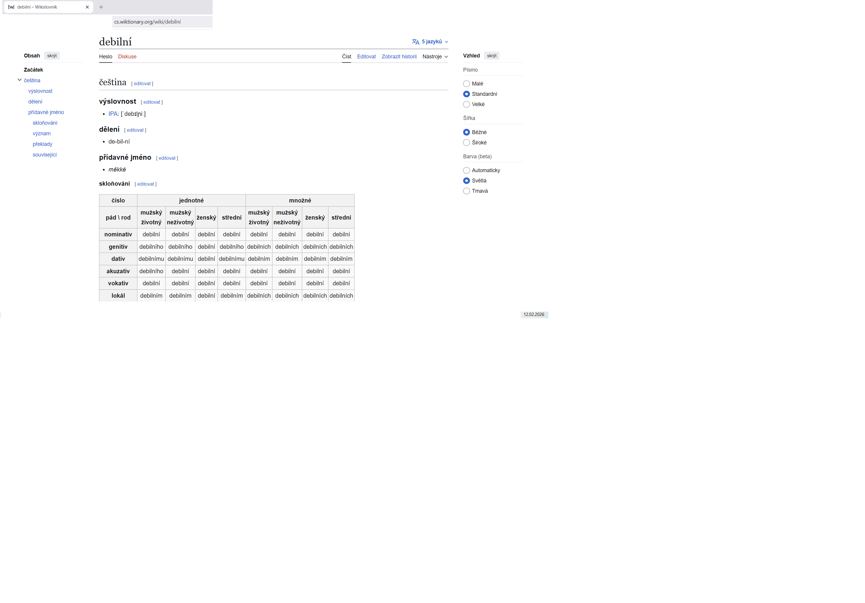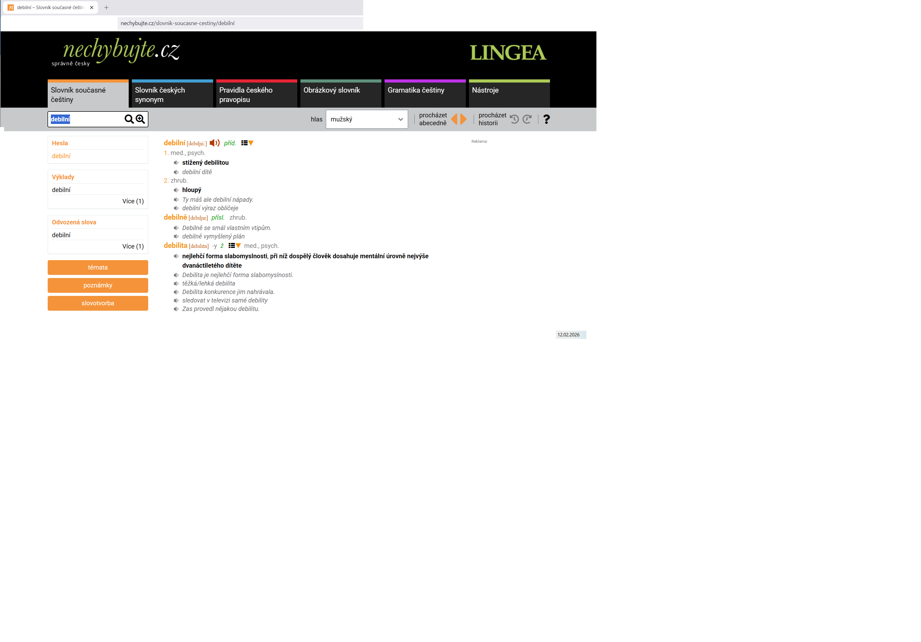 Našla jsem tyto informace ohledně slova „DEBILNÍ“: