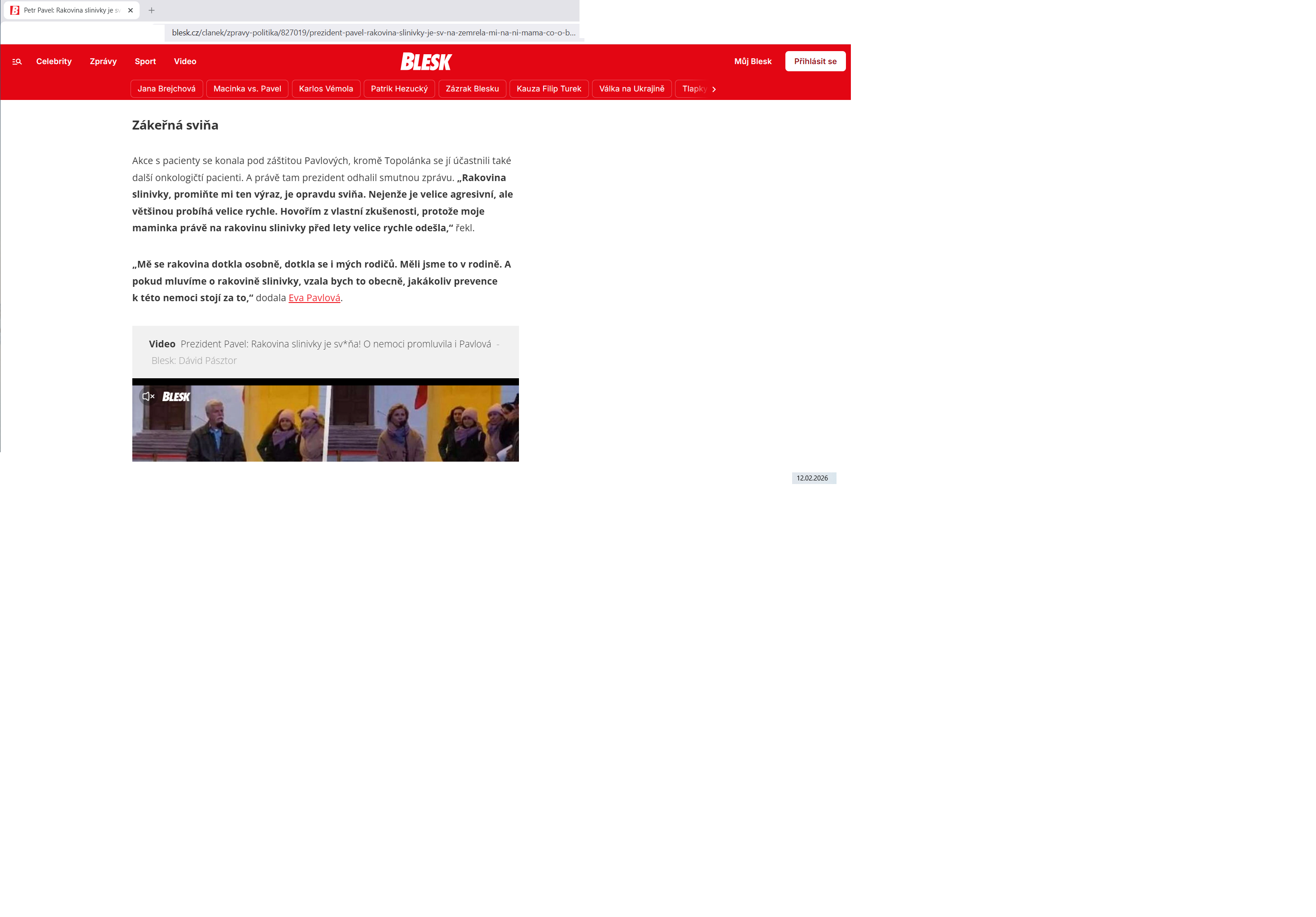 Ale když použil prezident Pavel jiné slovo v souvislosti s rakovinou, tak ho vícero médií dalo rovnou do titulku. Tehdy to bylo korektní a nevulgární?