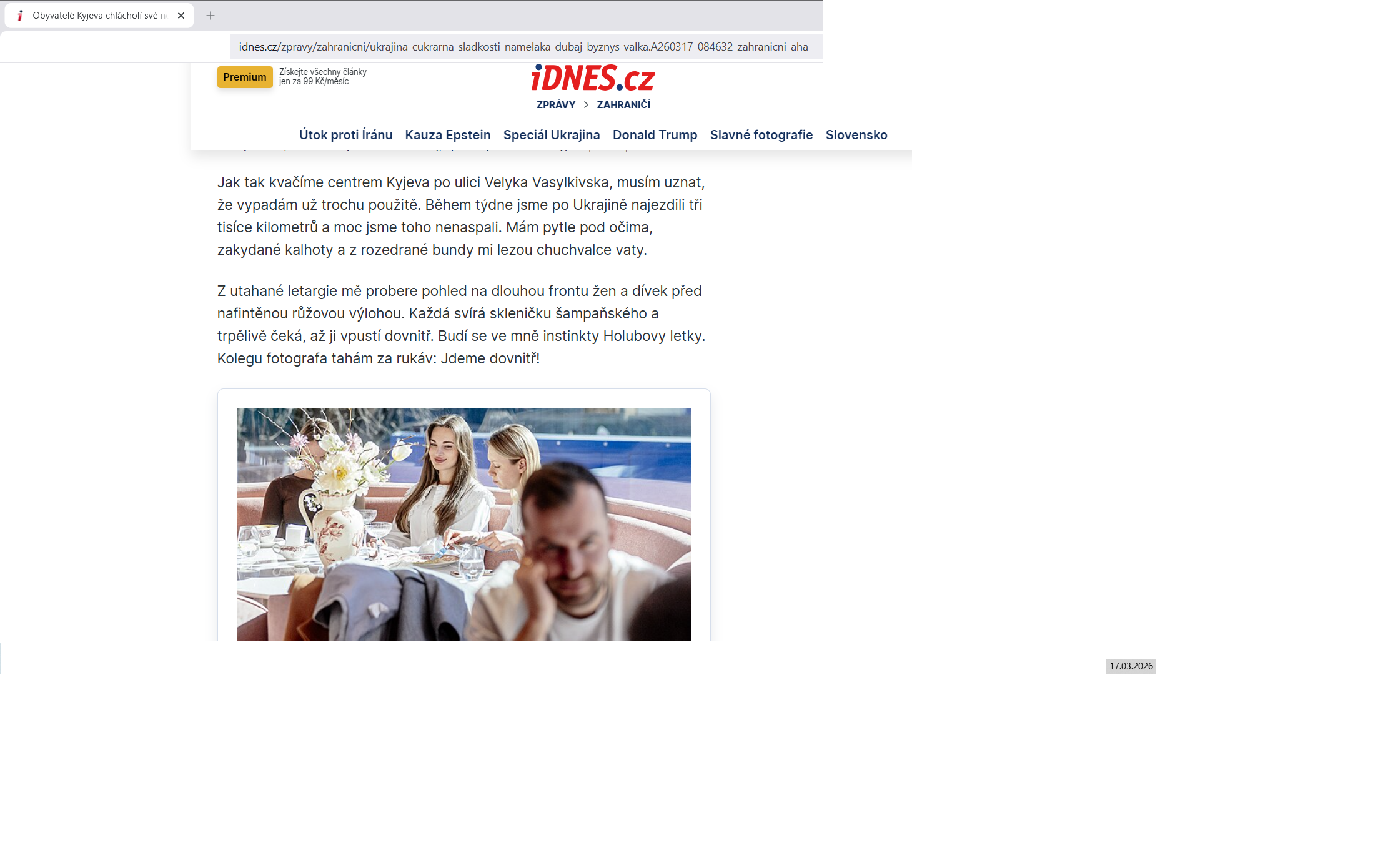 Vidím v článku, že se stojí ve frontě se šampanským – ne ve válečné…